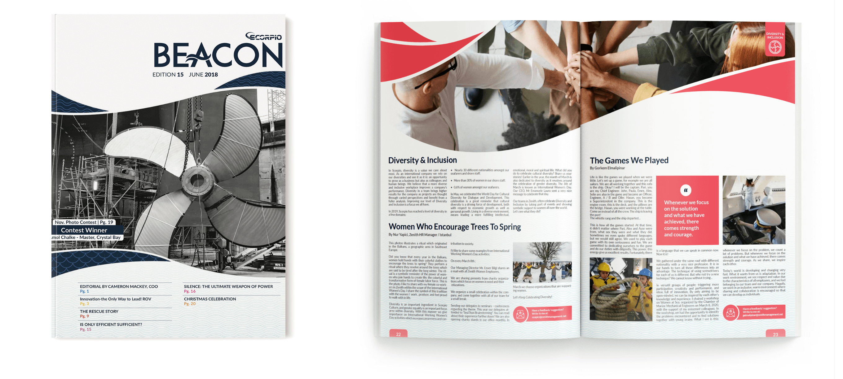 Beacon became an instant hit amongst the global workforce, specially amongst the sailors on board. It served the key strategic purpose of facilitating a clear emotional bond between the on-shore & off-shore employees. From the first revamped edition itself, the Beacon became the most awaited communication on any Scorpio ship across the globe.